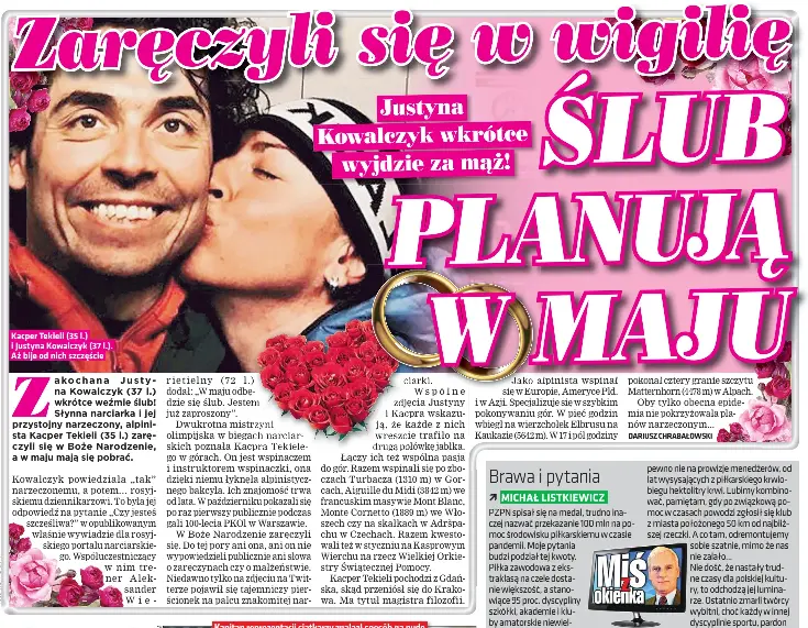 Słynna biegaczka narciarska justyna kowalczyk wyszła za mąż za znanego alpinistę kacpra tekielego.